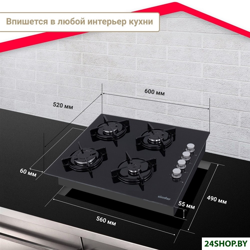 - Газовые конфорки: 4