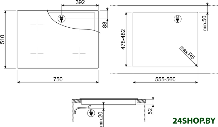 - Материал рабочей поверхности: cтеклокерамика