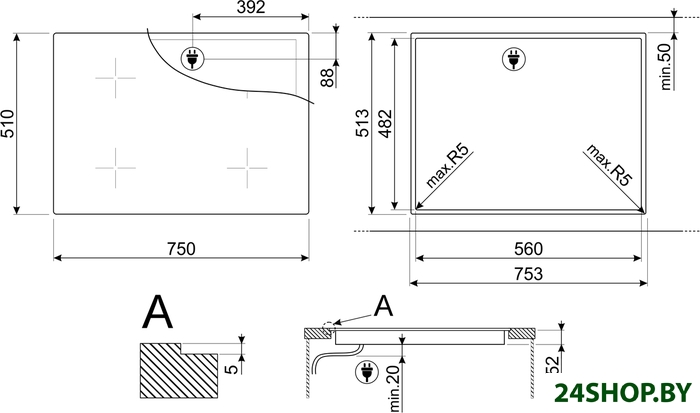 - Индукционные конфорки: 4