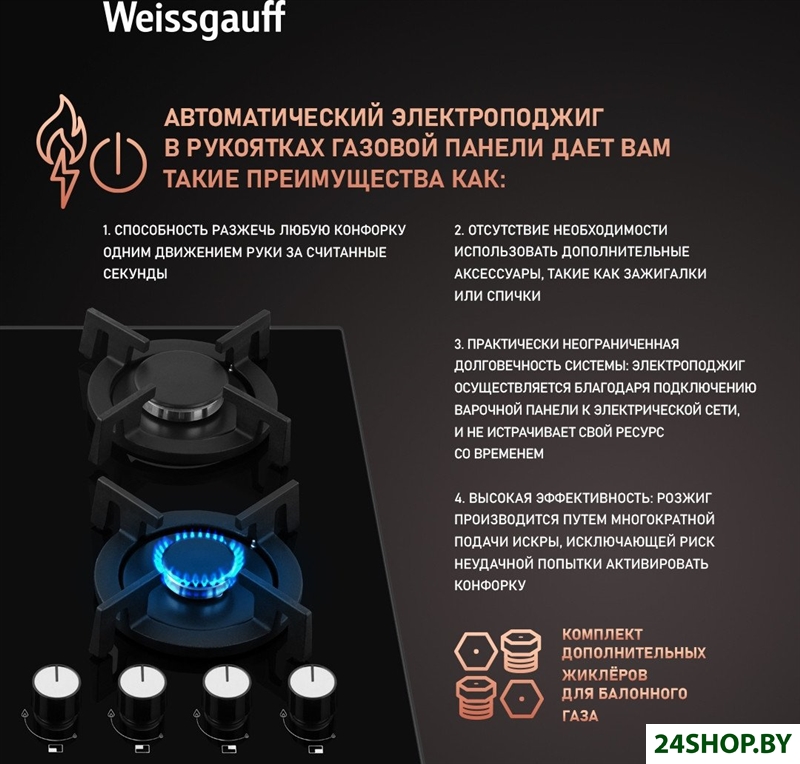 - Газовые конфорки: 4