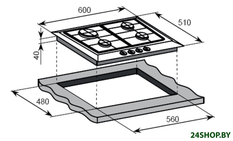 - Газовые конфорки: 4