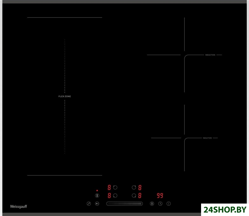 - Подробная информация о конфорках: 2-1900 Вт, Boost 2200Вт, 2- 1300 Вт, Boost 1500 Вт, Расширяемая зона 180*380 мм, 3000 Вт, Boost 3600 Вт