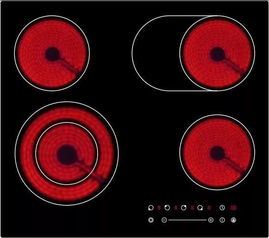 - Подробная информация о конфорках: 2x165 мм (1200 Вт)1x165x270 мм (1100/2000 Вт)1x138-230 мм (1000-2200 Вт)