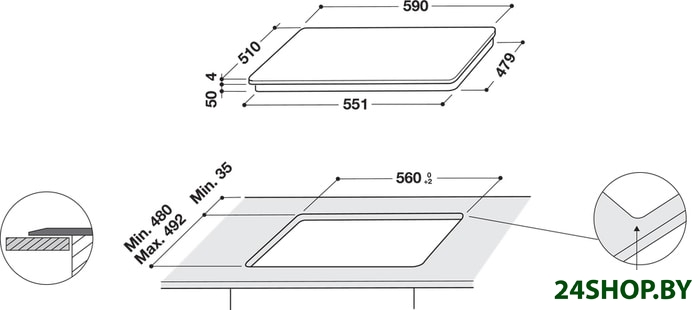 - Индукционные конфорки: 4