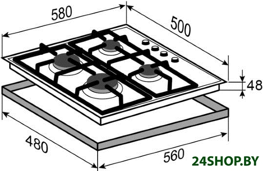 - Газовые конфорки: 4