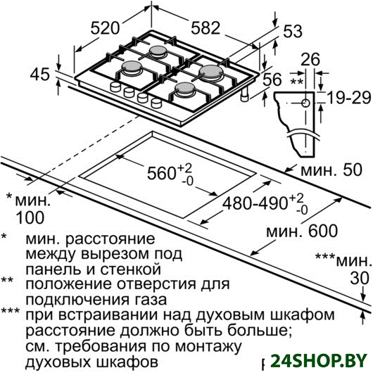- Газовые конфорки: 4