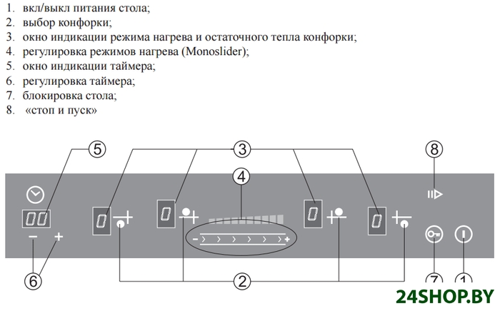 - Индукционные конфорки: 4