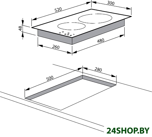 - Индукционные конфорки: 2