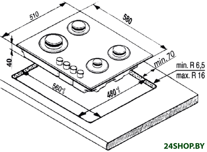 - Газовые конфорки: 4