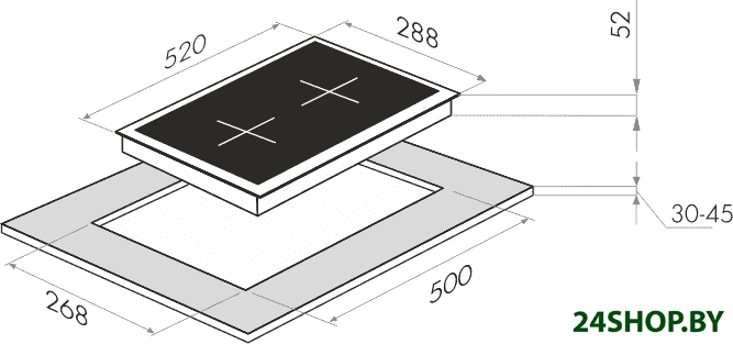 - Глубина: 52 см