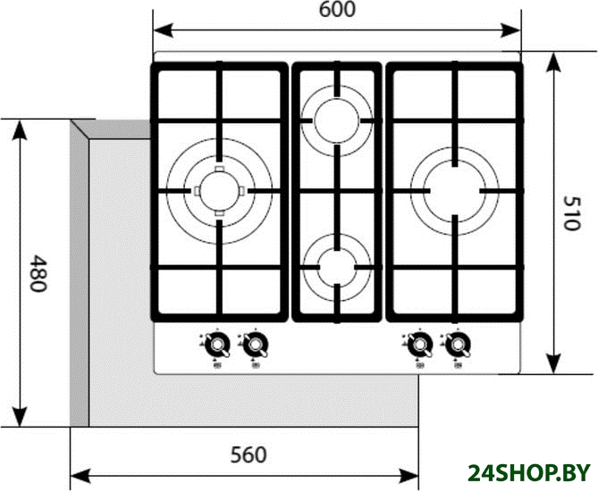 - Газовые конфорки: 4