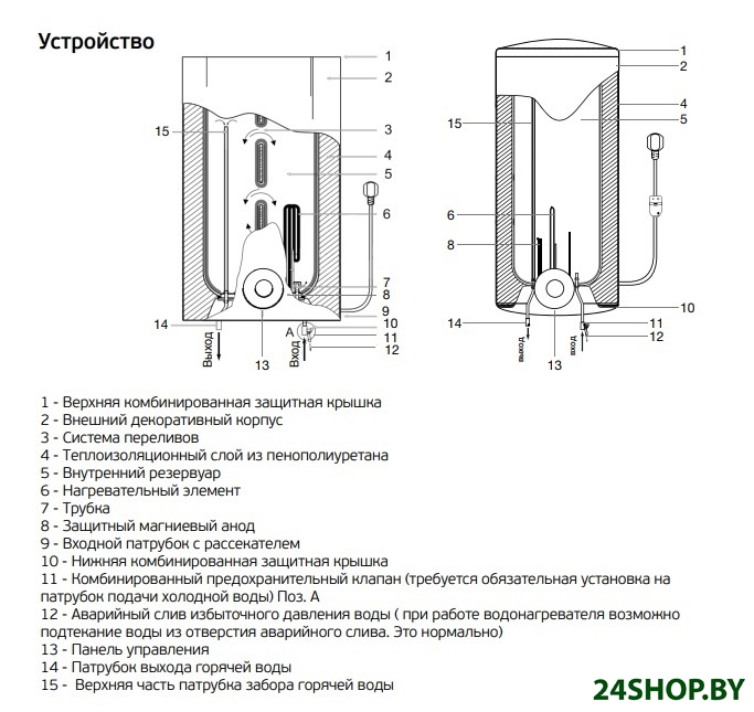 - Принцип нагрева воды: накопительный