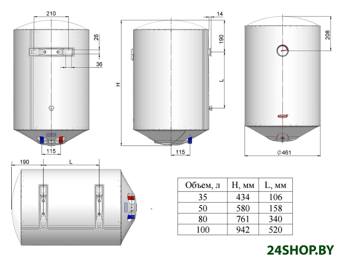 - Принцип нагрева воды: накопительный