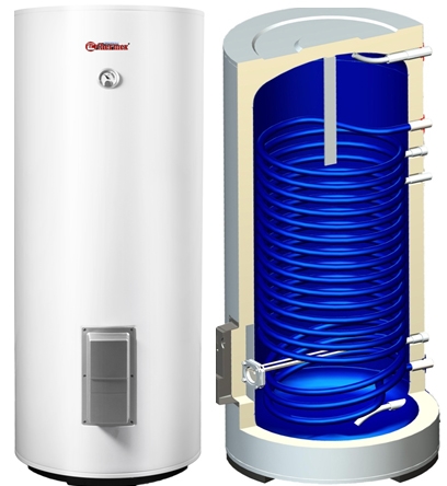 Нагревательный элемент в приборе может работать от газа или от электричества. Газовые водонагреватели более экономичны, так как стоимость газа в несколько раз ниже стоимости электроэнергии. Единственное важное условие - наличие подводки газа в квартире. Газ автоматически включается и выключается при поступлении воды. Однако газовые водонагреватели требуют более сложной установки, нежели электрические. Электрические водонагреватели распространены шире. Их можно устанавливать практически везде, где есть источник электропитания. Однако если маломощные нагреватели подключать достаточно просто (иногда достаточно воткнуть вилку в розетку), то для нагревателей мощностью свыше 5 кВт требуется отдельная электропроводка от щитка и установка дополнительного предохранителя. Нагреватели косвенного нагрева используют тепло, вырабатываемое другими устройствами, как правило, это котел отопительной системы. Внутри такого нагревателя расположен змеевик или бак. С помощью насоса внутри змеевика постоянно циркулирует теплоноситель от системы отопления, благодаря чему и нагревается вода в самом водонагревателе. Существуют также и комбинированные водонагреватели, сочетающие в себе косвенный и электрический способы нагрева. Электричество в данном случае используется для дополнительного нагрева, например, поддержания температуры в баке.